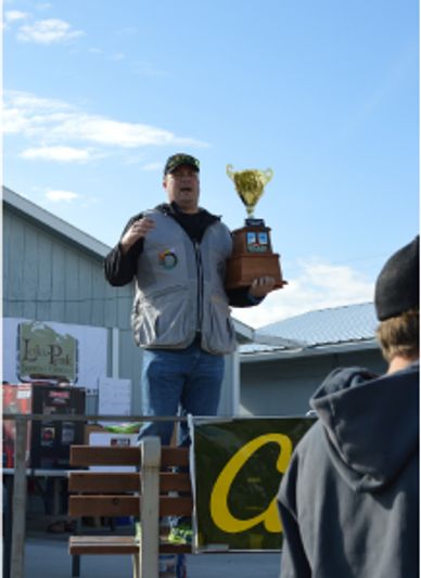 The Daniel Lyon Trophy is the grand prize of the Putt & Pull event. It goes to the captain of the team that scored the highest combined score of: number of clays busted in Trap and the number under par in our Golf scramble. The key is: you have to have the same team of five in both Trap and Golf to qualify for the trophy. The winning team keeps the traveling trophy for the year between events.
